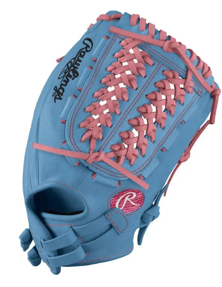 The 2025 Rawlings Heart of the Hide Unlimited 12" Fastpitch Softball Glove (PRO120SB-BPU) is engineered for elite-level infielders. Crafted from Rawlings' world-renowned Heart of the Hide leather, this 12" glove is designed for superior durability and a game-ready feel. With a striking Columbia Blue and pink design, this glove is built to perform and make a statement on the field. The modified trapeze loop web allows for quick transfers, while the thermo-formed wrist lining ensures a secure, comfortable fit. With R2G technology, the glove arrives nearly game-ready for faster break-in and ultimate performance.