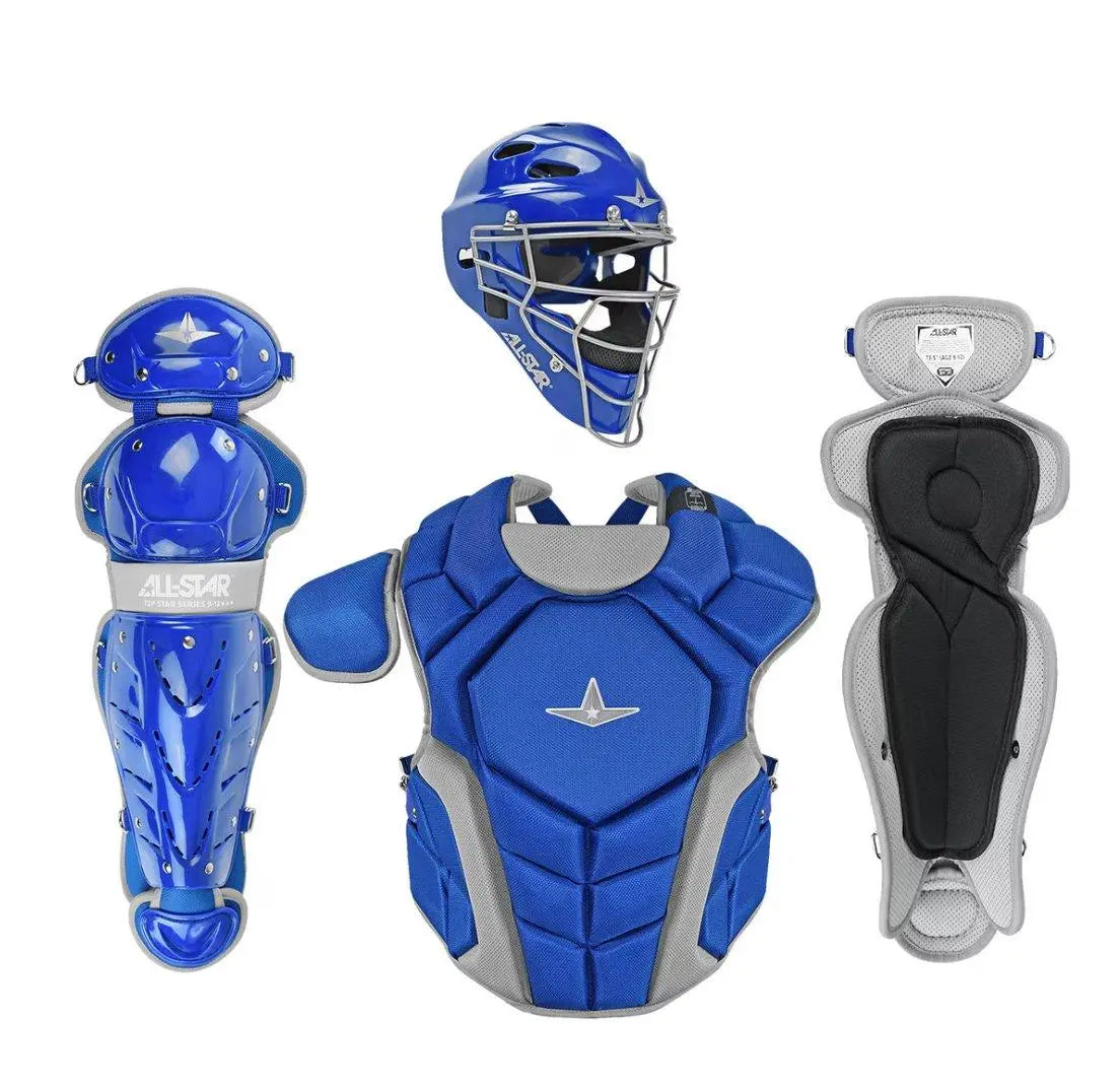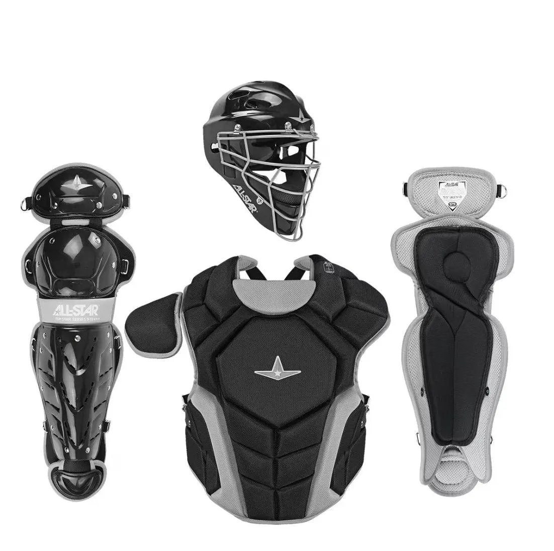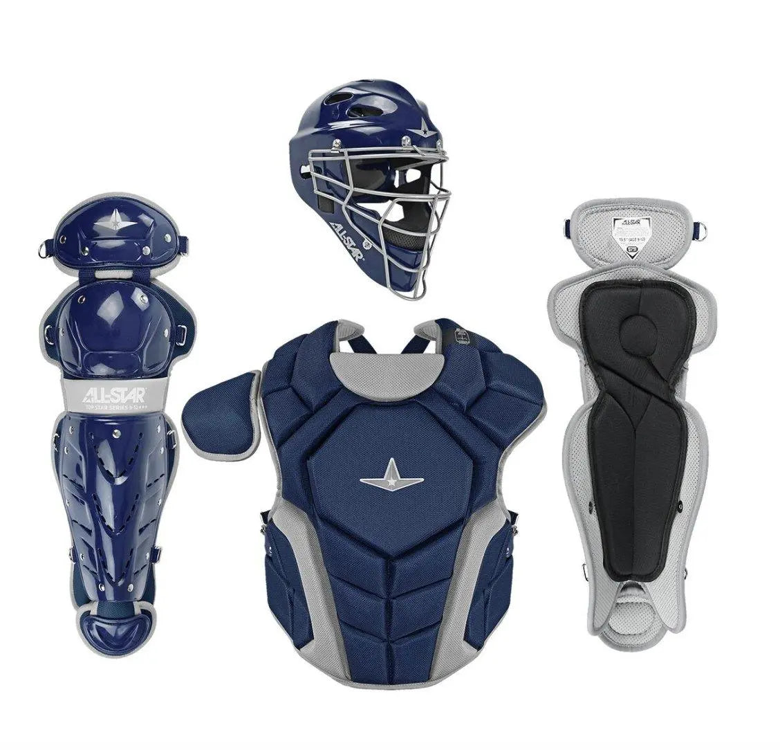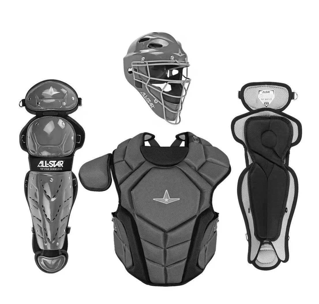 The All-Star Top Star Baseball Catcher's Set CKCC-TS is meticulously crafted for seasoned travel ball catchers, designed to provide professional-grade performance and protection. Built to meet the demands of competitive young athletes, this set includes top-quality headgear, a NOCSAE-certified chest protector with a removable groin protector, and extra-wide padded leg guards. Treated with StinkStop™ antimicrobial technology, the gear remains fresh and comfortable throughout intense gameplay.