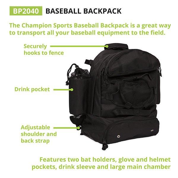 Champion Pro Baseball/Softball Backpack Bat/Equipment Bag BP2040 – Spacious, durable, and designed for athletes.