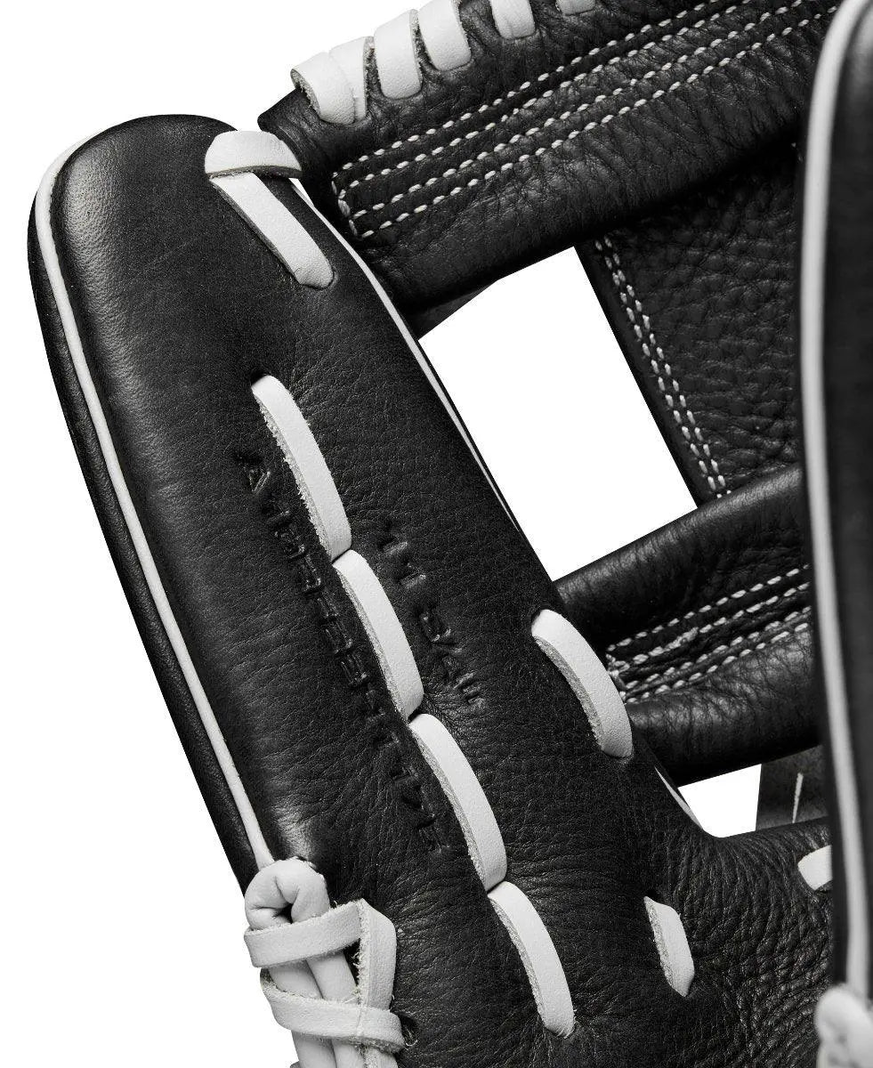 Handcrafted with black full-grain leather, the A1000 H75 offers both sleek style and durability, ensuring it withstands the demands of travel ball competition. Designed with True Pro Stock Feel, this glove delivers the feel of a professional glove with game-ready materials for immediate playability. The Sturdy and Soft construction molds to your game, providing the flexibility and softness needed for comfort without compromising the glove's structural integrity.